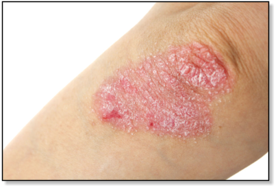 formlarında kızarık bir deri alanı üzeri sedef rengi